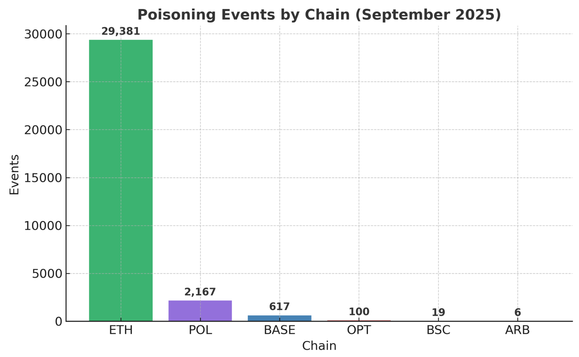 We detected 32,290 suspicious address-poisoning events affecting 6,516 unique victims during September 2025 (multi-chain).